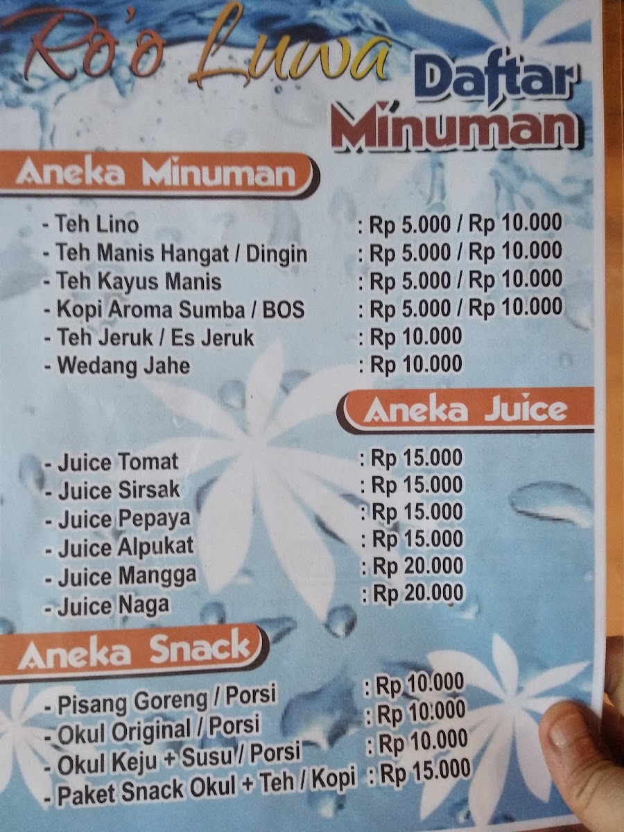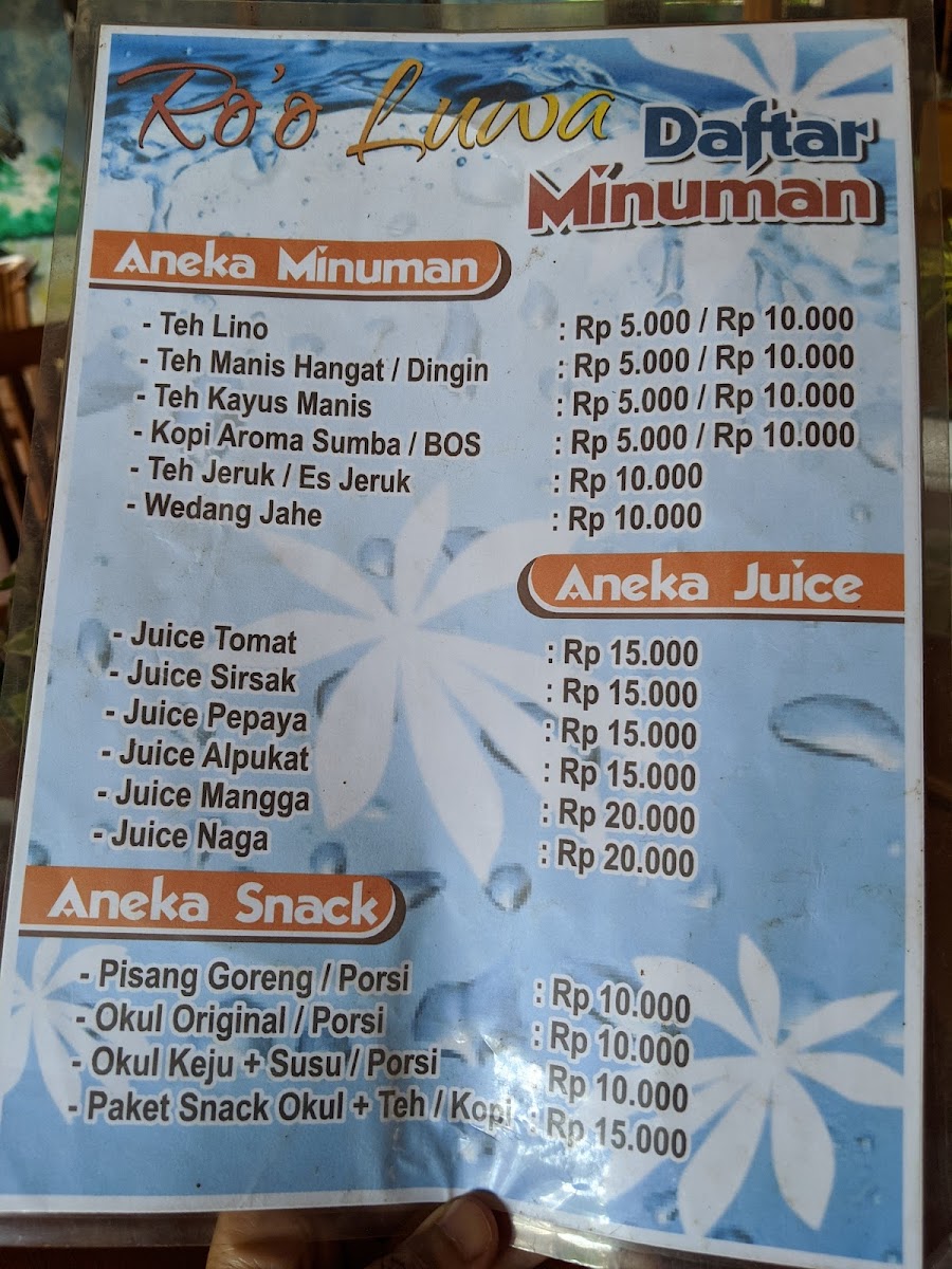 Beyond dishes, Ro'o Luwa also offers a selection of traditional Sumbanese souvenirs, ensuring a full cultural experience. Indulge in the flavors of Sumba while creating lasting memories at Ro'o Luwa!